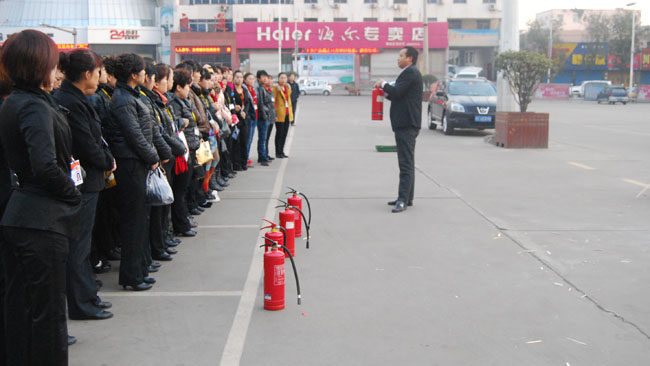 人人参与消防 共创平安和谐 —董村店组织员工开展消防演练活动 11月9日,是一年一度的全国消防宣传日,为进一步强化安全意识,提高每一位员工的自我保护和安全防范能力,使每一位员工会正确使用消防器材,保证消防安全“四个能力”建设的顺利开展,董村店组织全体干部职工开展了消防演练活动。 初冬的早上,丝丝微风出来阵阵寒意,董村店全体干部职工整体站立,认真聆听着防损部刘经理的专业讲解,大家的热情已盖过了初冬的寒意,个个争先恐后的参与实战演练,对于在灭火过程中的错误做法,防损部都进行了及时纠正,保证了消防演练活动的成效性。 通过此次消防演练活动,增强了广大干部职工的安全意识,让大家明白了火灾的危害性,学到了扑灭初期火灾的重要性,使“安全就是效益”的理念深入人心。